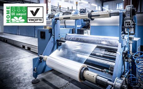 avec différents types de films : Polypropylène, Polyéthylène ou Home Compost (compatible avec la norme européenne EN 13432).