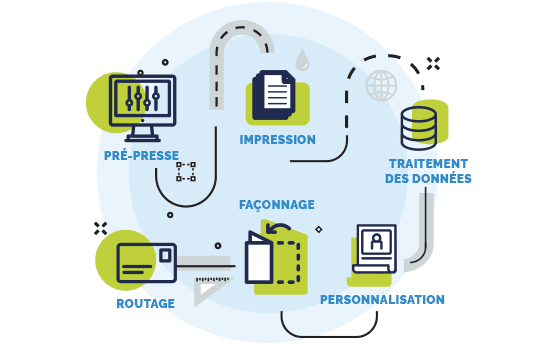 L’expérience acquise dans le prépresse, l’impression offset et numérique, la personnalisation laser et jet d’encre, le façonnage et le routage, permet d’assurer la gestion du marketing direct dans son intégralité.