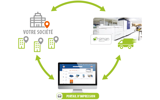 Notre imprimerie de web to print met un portail d’impression en ligne à votre disposition, personnalisé avec votre logo et vos couleurs. Il est accessible sur tous les écrans (PC, Mac, tablette, smartphone) à partir d’un navigateur. Chez Siman France, notre expérience fait la différence dans le web to print. En effet, votre organisation peut structurer durablement son écosystème d’impression.